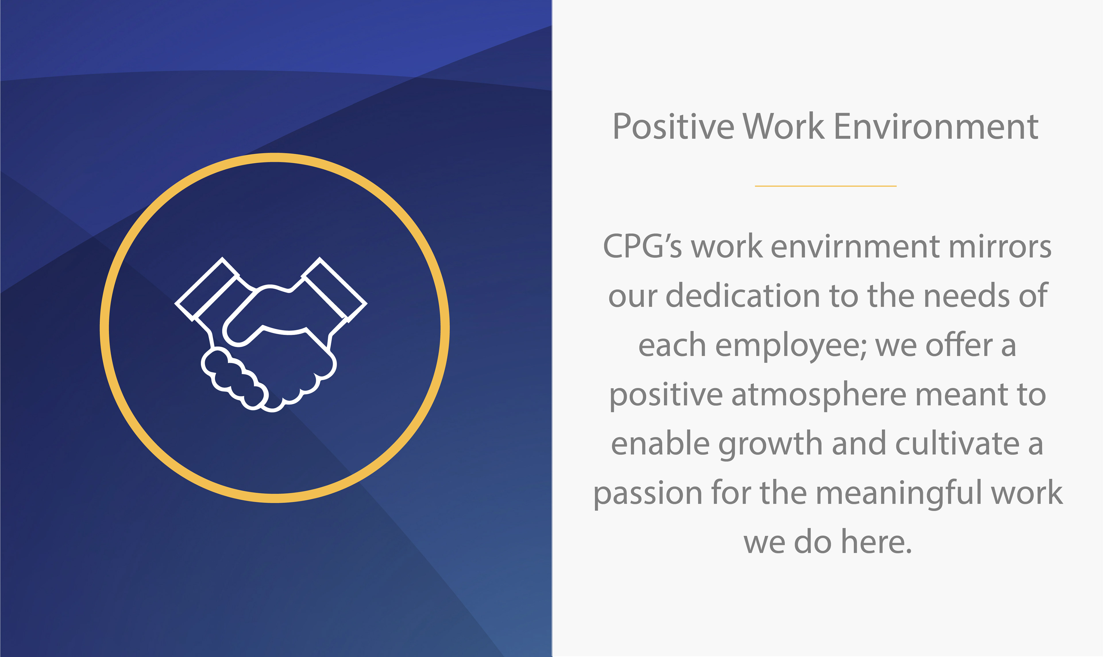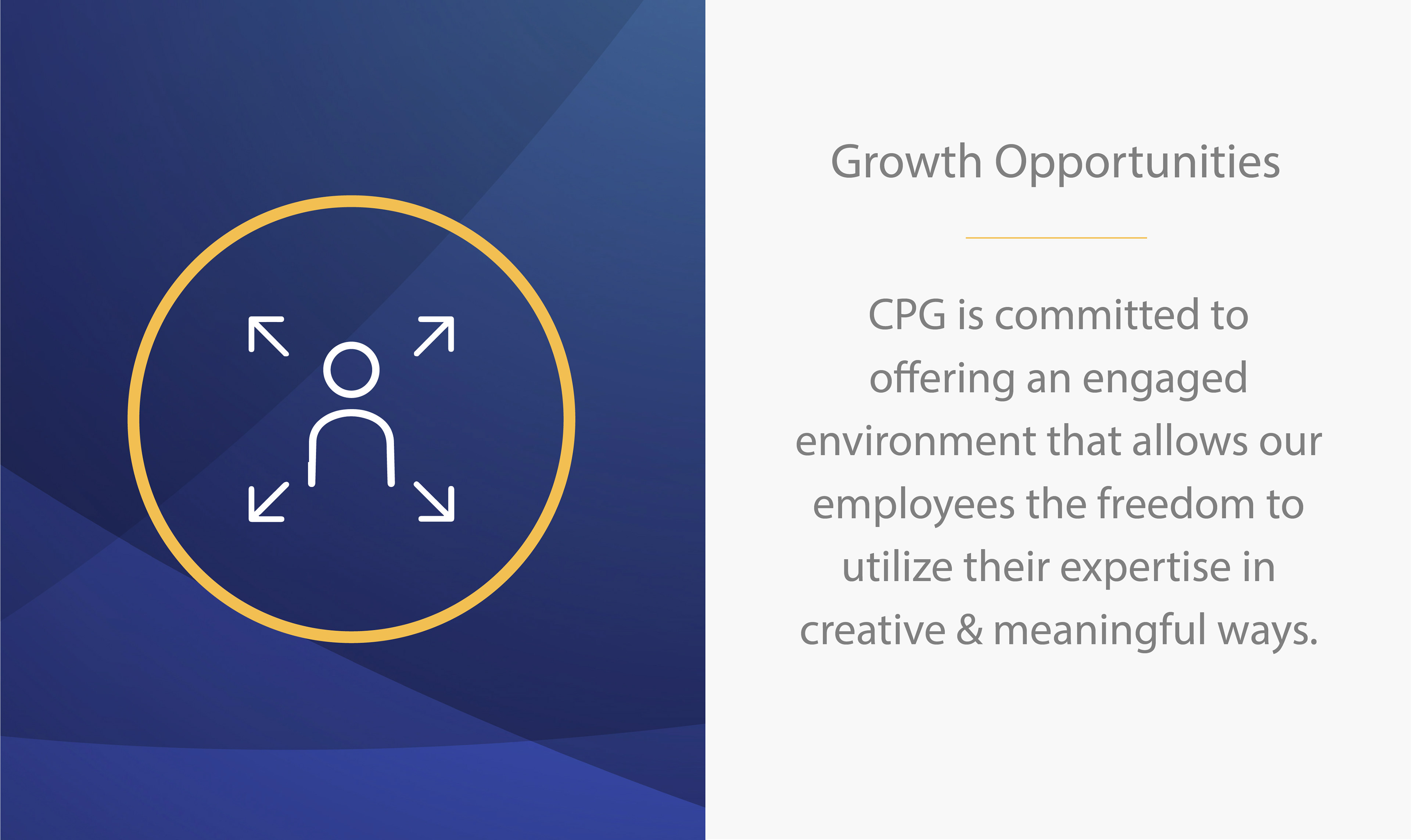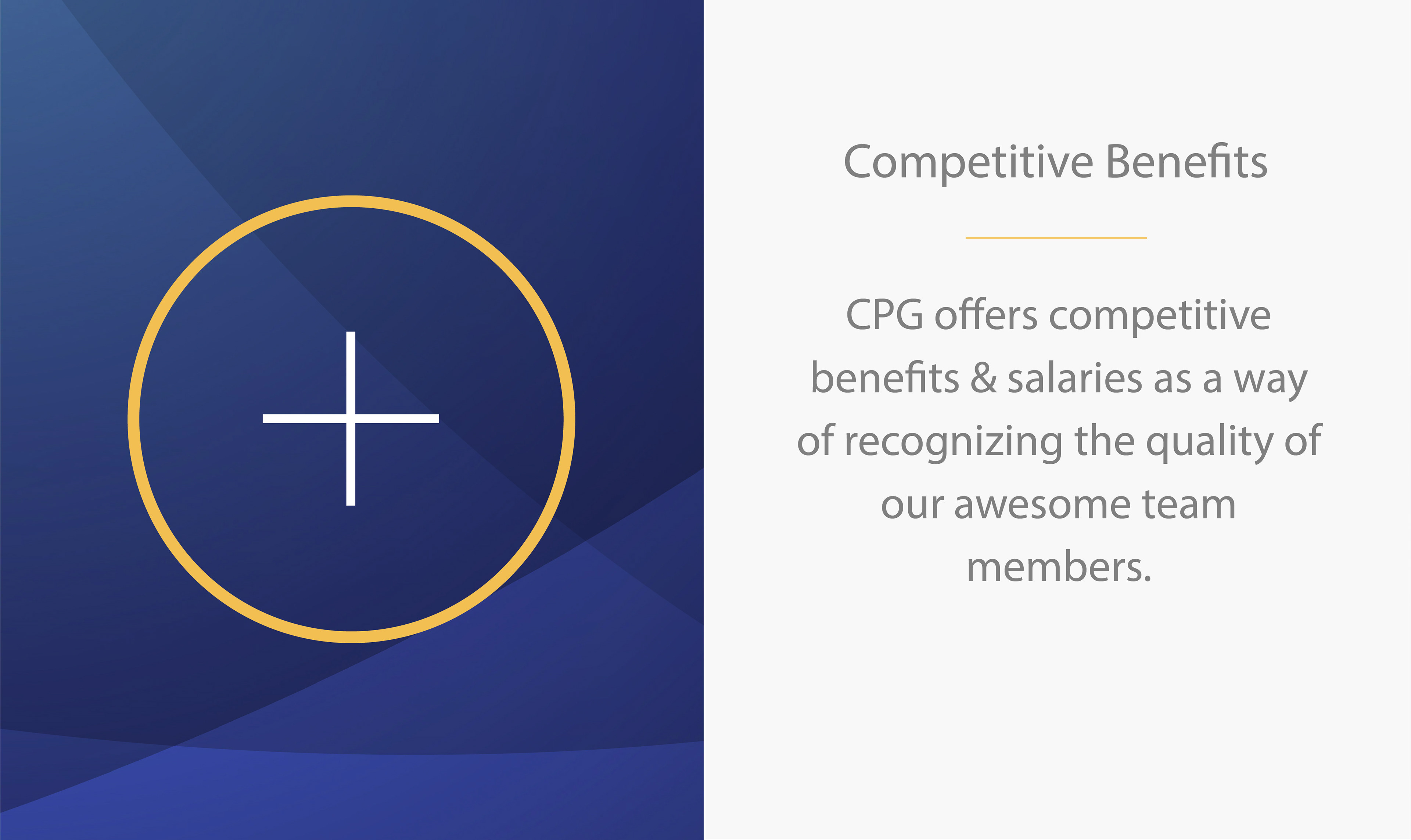 CPG is an equal opportunity employer and a drug-free workplace. We offer our employees a highly competitive compensation package including benefits and opportunities for professional development.